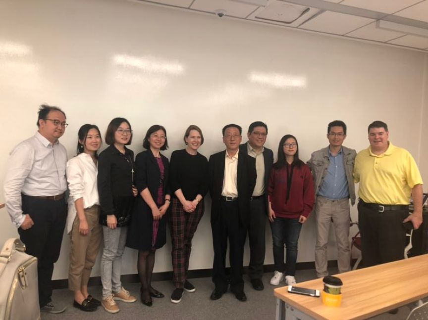 演讲结束后Becker 教授与上海哈佛同学会曹钟勇会长、上海精卫中心陈珏教授和复旦大学潘天舒、张聪和丁玫博士以及来自圣路易斯华盛顿大学和香港中文大学的Polites 和黄宣颖教授合影