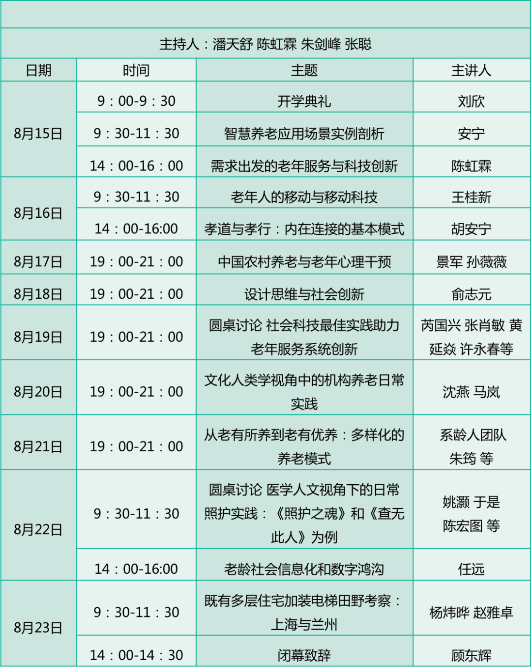 在秉承2018年和2019年课程内容多学科和跨界多元特色的基础上,本年度暑期学校将聚焦“社会科技”(social technology)和老年照护实践,通过借鉴田野民族志的洞见,以自下而上的路径,积极收集大量信息,以了解老年人的需求、生活状况以及他们的文化历史背景,从而得以指导技术创新,并以伦理和人文标准衡量技术创新,与老年人的社会和文化系统相连接,使技术成为复杂的动态的社会服务系统的有机组成部分,为增进社会凝聚力和社会融合做出贡献。课程内容涵盖全球化和地方转型语境中所呈现的核心议题,如:科技与普通老年人日常生活实践和社会发展的关系、适老科技产品和科技理念在老年服务以及照护实践中的前沿应用、积极老龄化与社会创新、适老科技与人文价值、社会福利中的信息技术战略、突发公共卫生事件与老龄社区护理服务维持机制、网络社区和网络咨询的问题和前景、田野研究方法与策略等等,力图描述出充分体现当代医学人类学和相关学科公共性、前瞻性和植根性的路线图。自2017年3月起复旦大学与清华大学、哈佛大学等海内外高校的人类学教师研究团队与江苏产业技术研究院以多种方式,开展以适老科技和社会发展为核心议题的跨学科的教研研究,为本年度的暑期学校提供了坚实的学术支持。受疫情影响,今年暑校的授课将尝试以线上教学模式,为修课学生提供与教学研究人员、社区工作者、养老机构负责人、工程师和作家等不同领域的专家进行网上交流互动的机会。